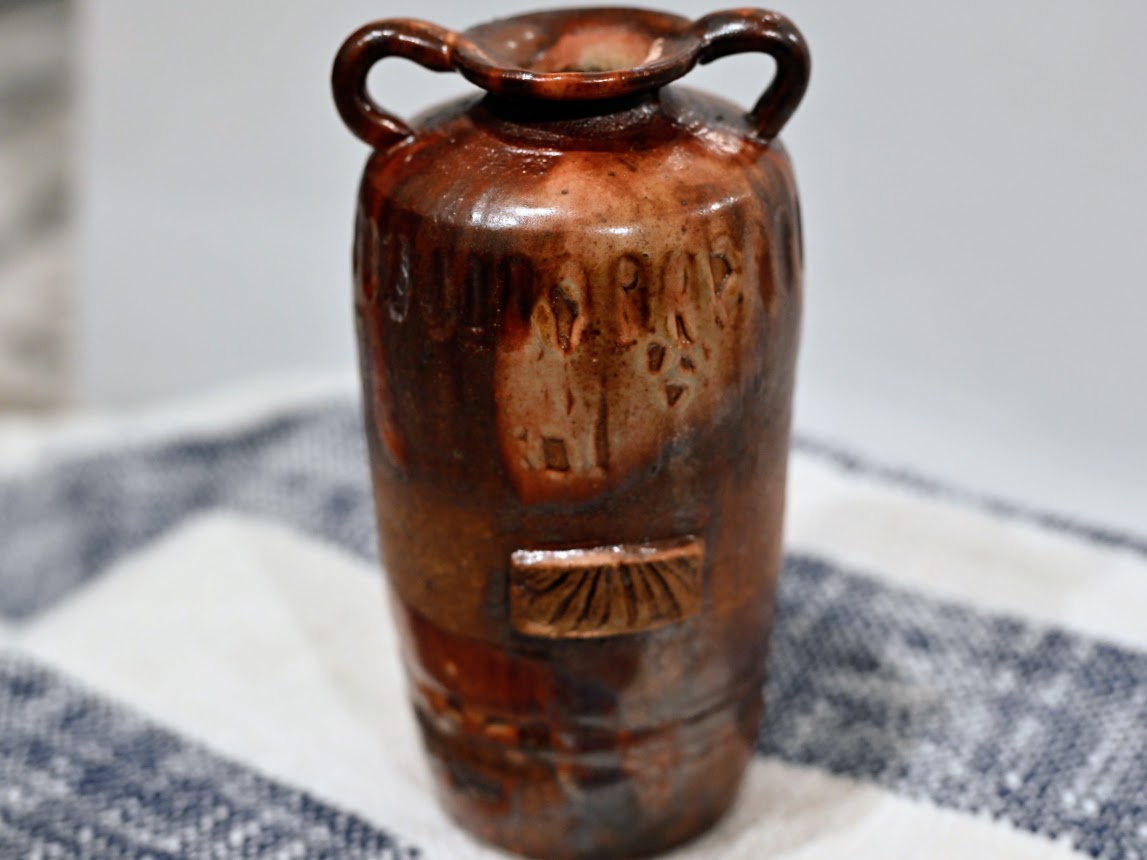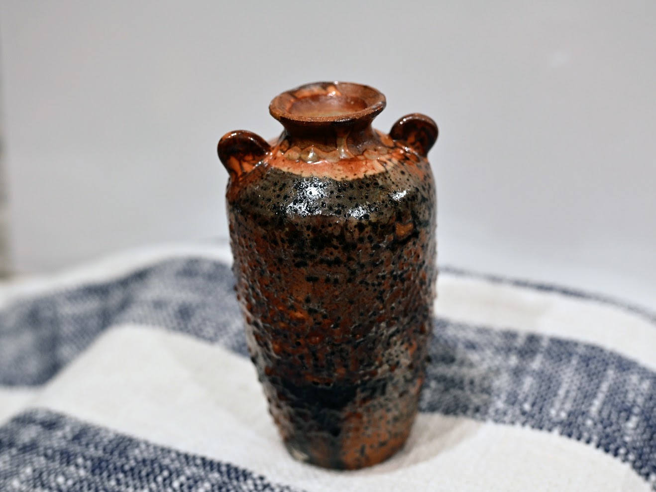 Tablet Motif Dual-Ear Vase in Russet Glaze